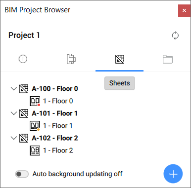 Wenn die 2D-Dokumentation nicht mehr mit dem 3D-Modell übereinstimmt, werden die entsprechenden Planansichten auf der Registerkarte Pläne des Panels Projekt-Browser rot markiert.