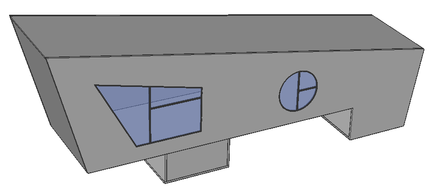 Das Fenster wird mit dem ausgewählten Stil an der Wand erstellt. Die folgende Abbildung zeigt den linken Fensterstil mit drei Paneelen, der zum Erstellen der Fenster auf der Wandfläche ausgewählt wurde.