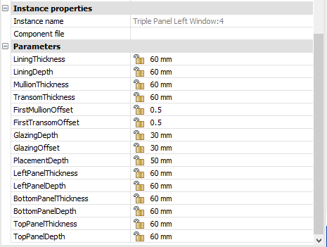 - (Optional) Sie können das Fensterdesign verfeinern, indem Sie die Standardwerte der Parameter ändern. Wählen Sie dazu das Fenster aus und ändern Sie die gewünschten Parameter im Panel Eigenschaften.