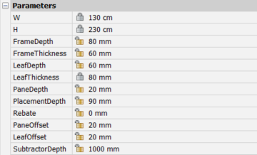 Mithilfe der in der Quellzeichnung des Fensters oder der Tür definierten Parameter können Sie jedes Detail eines Fensters/einer Tür separat bearbeiten.