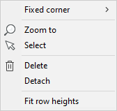 - Zoom zu: Zoomt auf die Tabelle. Legt gegebenenfalls das Tabellenlayout als aktuelles Layout fest.