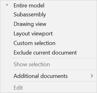 - Layout-Ansichtsfenster: Nur Teile, die in den ausgewählten Layout-Ansichtsfenstern sichtbar sind, werden in die Stückliste aufgenommen.