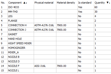 - Festlegen, wie die Stücklistentabelle sortiert werden soll.
