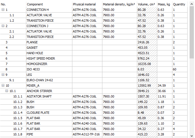 - Zusätzliche Dokumente: Die Stücklistentabelle enthält Teile aus anderen Dokumenten.