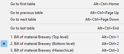 - Zur nächsten Tabelle gehen: Wechselt zur nächsten Stücklistentabelle im Dokument.