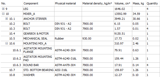 Anmerkung: Die Systemvariable BOMTEMPLATE definiert den Pfad zu der Datei mit der Standard-Stücklistenvorlage, die für die Erstellung neuer Stücklistentabellen verwendet wird.Anmerkung: Wenn die Systemvariable BOMTEMPLATE leer ist oder der Pfad ungültig ist, wird die unten stehende Standardkonfiguration der Stücklisten verwendet.- Oberste Ebene: Erstellt eine neue Stückliste ausschließlich mit Komponenten der obersten Ebene.