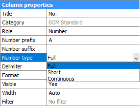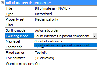 Ändern Sie die Eigenschaft Zähl-Modus im Abschnitt Stücklisten-Eigenschaften des Eigenschaftenrasters.