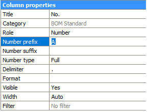 Wählen Sie im Abschnitt Spalten-Eigenschaften die Eigenschaft Nummern-Präfix aus.