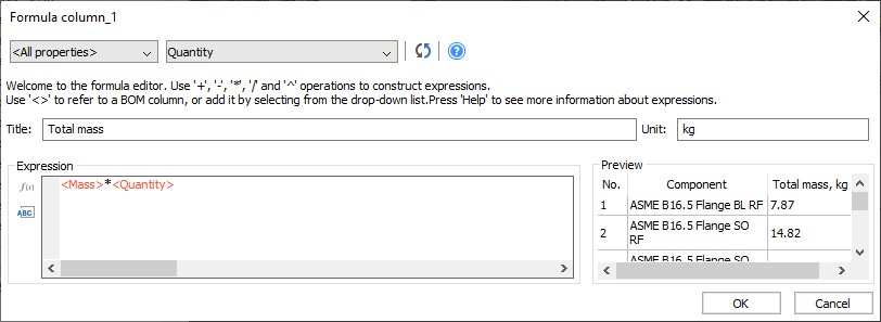 - Ändern Sie den Spaltentitel, die Einheit und den Ausdruck nach Bedarf.