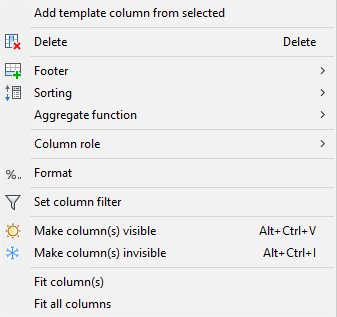 Wählen Sie im Kontextmenü die Option Vorlagenspalte von ausgewählter hinzufügen aus.