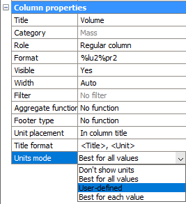 (Optional) Ändern Sie die Eigenschaft Einheiten-Modus im Abschnitt Spalten-Eigenschaften.