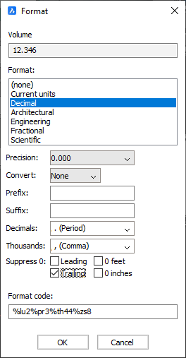 Wenn BricsCAD eine Formeleinheit bekannt ist, werden Einheitenumrechnungen für Formelwerte unterstützt.
