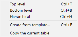 - Auswählen: Wählt die Tabelle aus. Legt gegebenenfalls das Tabellenlayout als aktuelles Layout fest.