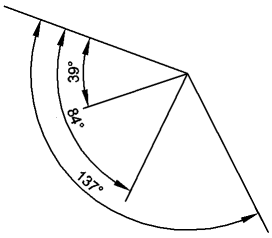 Bewegen Sie den Cursor, um entweder den Innenwinkel zwischen den Linien oder den Ergänzungswinkel zu bemaßen.