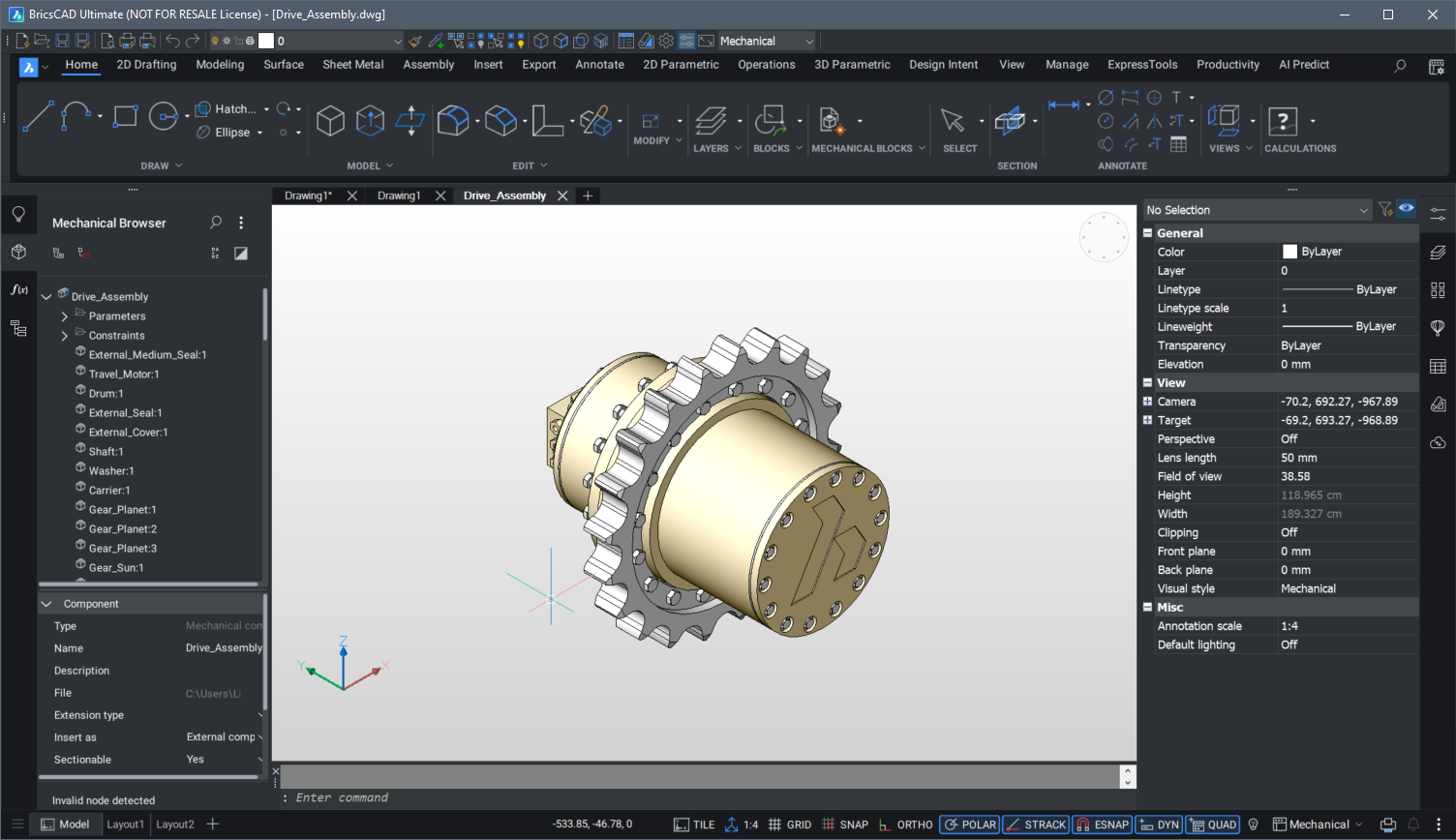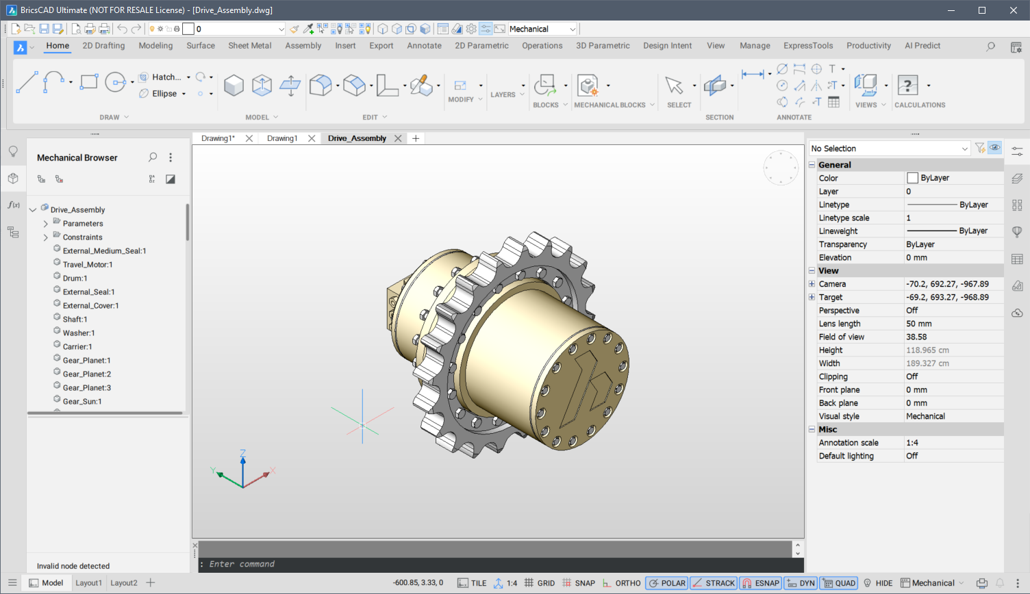 Das Layout des BricsCAD®-Anwendungsfensters hängt vom aktuellen Arbeitsbereich ab.