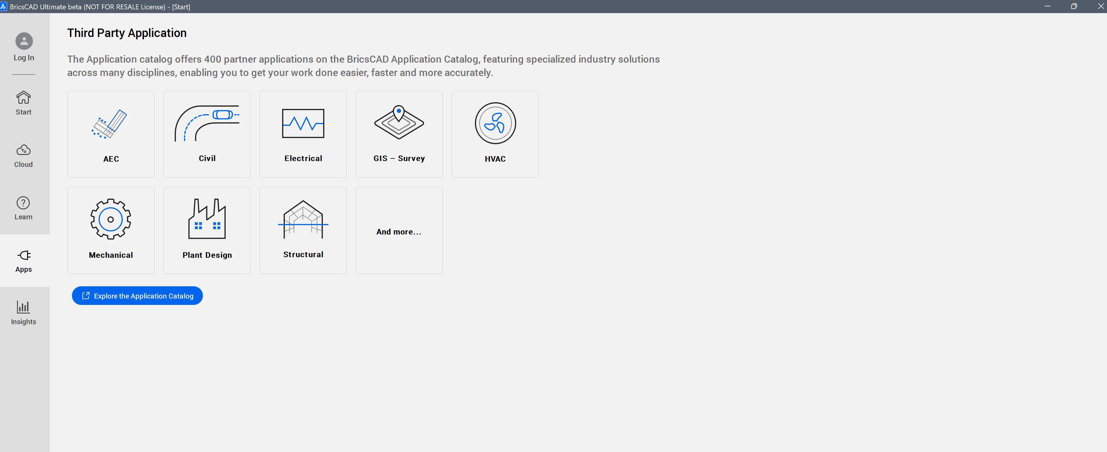 - Klicken Sie auf Den Anwendungskatalog erkunden, um den vollständigen BricsCAD®-Anwendungskatalog zu öffnen.