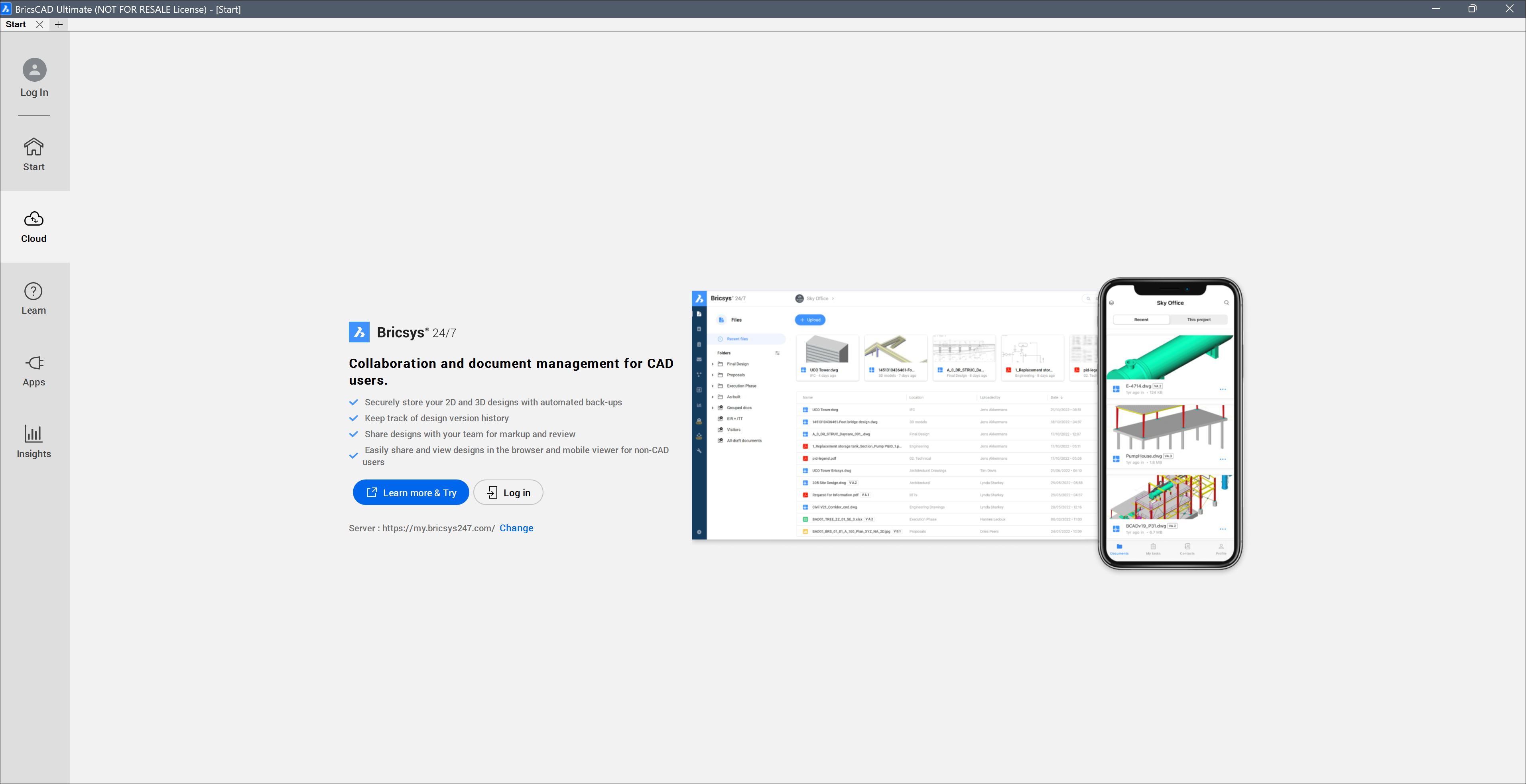 Die Registerkarte Cloud bietet Zusammenarbeit und Dokumentenverwaltung für CAD-Benutzer.