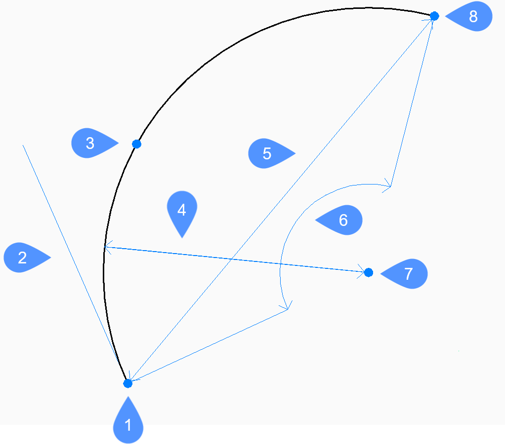 Erstellt einen Bogen aus einer Kombination von Optionen, wie Startpunkt, zweiter Punkt, Endpunkt, Mittelpunkt, eingeschlossener Winkel, Richtung und Länge der Sehne.