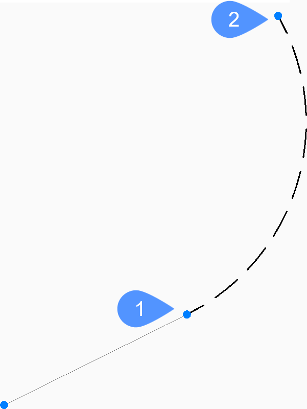 Erstellt einen Bogen aus dem zuletzt gezeichneten Bogen oder Liniensegment und folgt dabei seinem Winkel.