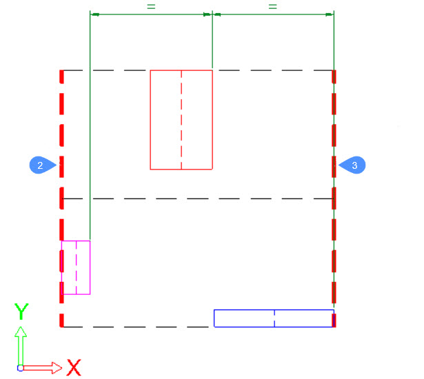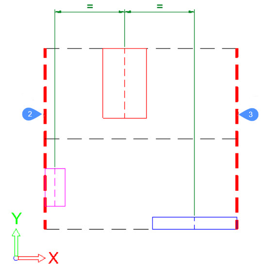 - Die Objekte werden nicht entlang der angegebenen Richtung angeordnet. Wurde bei der Ausführung des Befehls bereits eine Anordnung entlang der angegebenen Richtung angeordnet, wird das Objekt an seine ursprüngliche Position auf der angegebenen Achse verschoben.