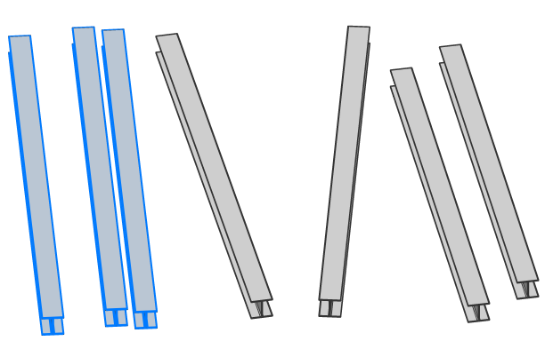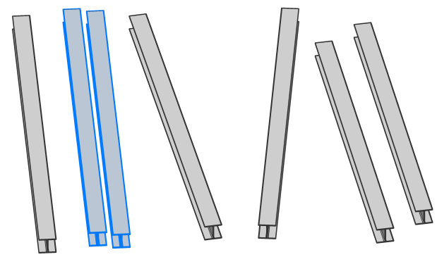 Wählt lineare Volumenkörper mit koplanaren und/oder parallelen Achsen aus. Ist eine Fläche eines linearen Volumenkörpers ausgewählt, werden die entsprechenden Flächen der linearen Volumenkörper mit koplanaren/parallelen Achsen ausgewählt.