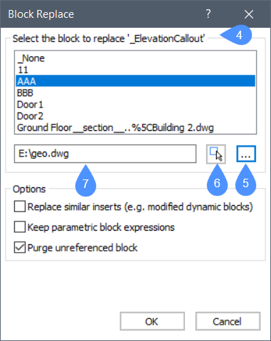 - Wählen Sie eine .dwg- oder .dxf Datei anstelle eines Blocknamens.