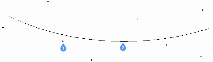 - Punkte, die der Befehl zur Anpassung des Bogens verwendet.