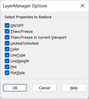 - Öffnet den Dialog LayerManager Optionen, in dem Sie die Optionen festlegen können, die für den Vorgang Wiederherstellung verwendet werden sollen.