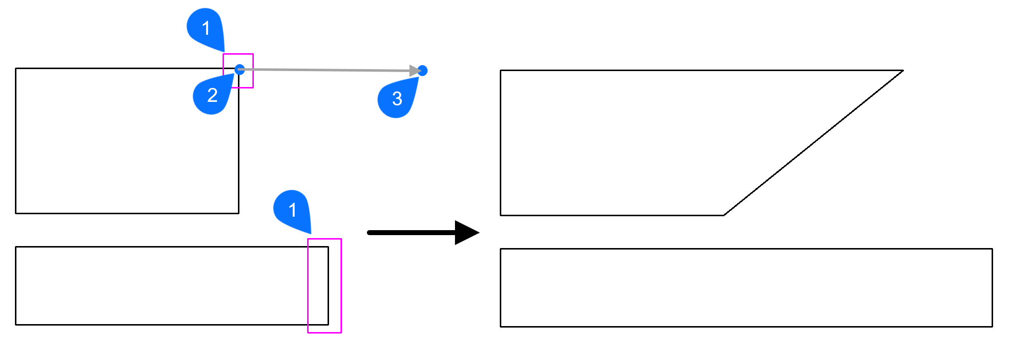 - Erstellt ein kreuzendes Polygon, um alle von ihm berührten Objekte zu strecken.Anmerkung: Klicken Sie mit der rechten Maustaste, um das Polygon zu schließen.