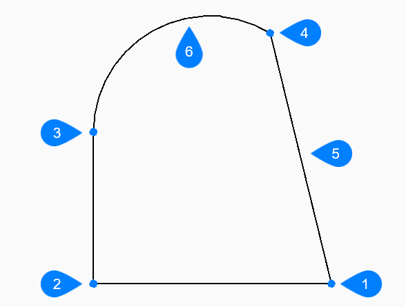 - Zeichnet Polylinien-Bogensegmente durch Angabe des Bogenendes.