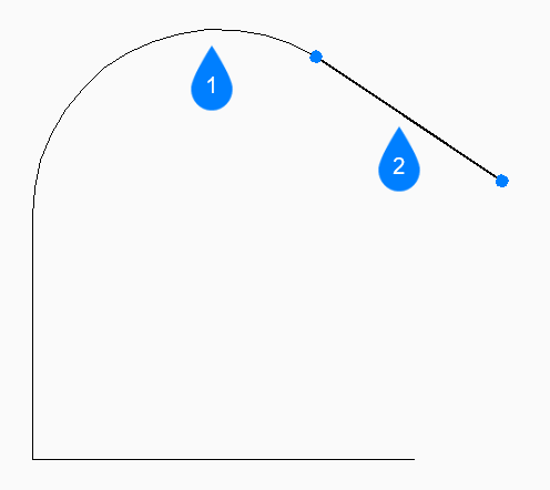 - Beginnt mit der Erstellung einer Polylinie vom letzten gezeichneten Bogen- oder Liniensegment und folgt dabei seinem Winkel.