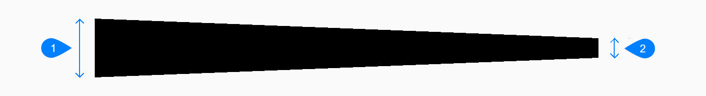- Gibt die Anfangs- und End-Halbbreite des Segments an, sowie für alle folgenden Segmente, bis Sie die Breite oder Halbbreite ändern.