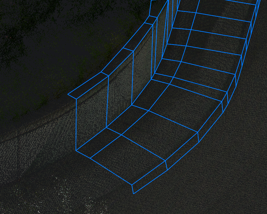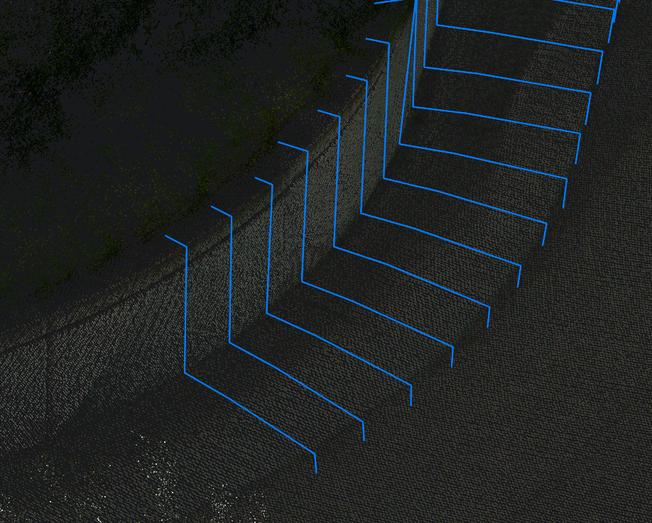 Reconstructs a linear feature in a point cloud by connecting a set of profile key points in consecutive cross sections of the point cloud. The detection of the profile in the next cross section can be automatic or manual.