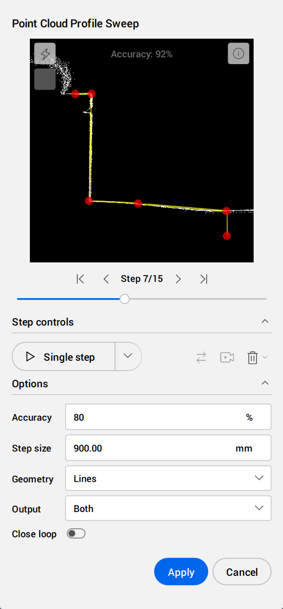 Launch the command to open the Point Cloud Profile Sweep command context panel.