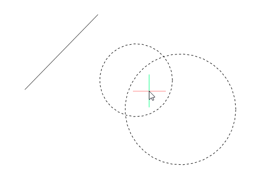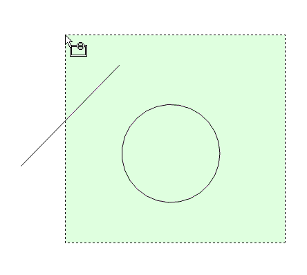 - Wählt alle Objekte aus, die sich innerhalb eines kreisförmigen Auswahl-Fensters befinden und dieses kreuzen. Der Umriss des Auswahl-Kreises wird mit einer gestrichelten Linie gezeichnet und ist mit transparentem Grün gefüllt.