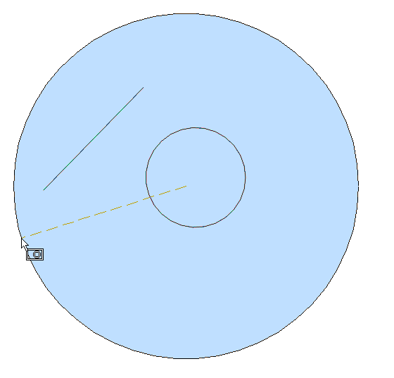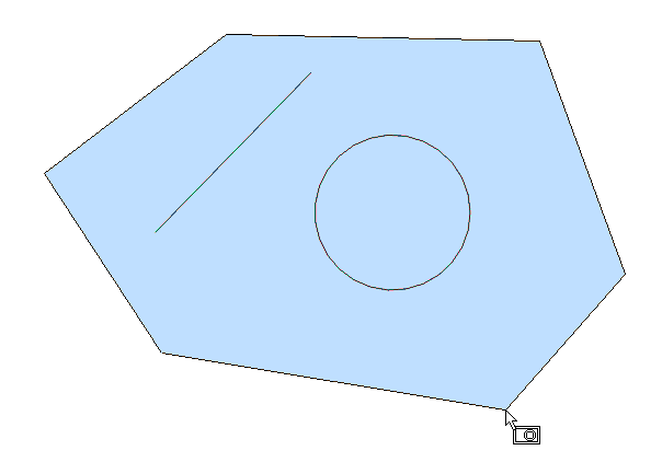 - Wählt alle Objekte aus, die vollständig innerhalb eines kreisförmigen Auswahl-Fensters liegen. Die Umrisslinie des Auswahlkreises wird dargestellt, gefüllt mit transparentem Blau.