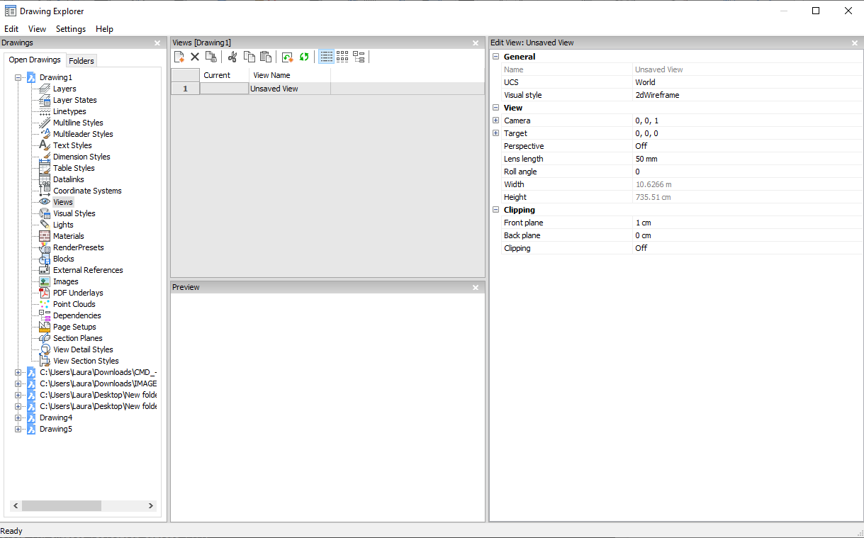 Öffnet den Dialog Zeichnungs-Explorer mit dem Abschnitt Ansichten ausgewählt, um Ansichten in der aktuellen Zeichnung anzuzeigen und zu ändern.