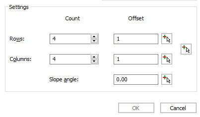- Spezifiziert den Abstand zwischen Zeilen und Spalten. Sie können einen Abstand in die Versatzfelder eingeben oder auf die Schaltflächen klicken, um den Versatzabstand in der Zeichnung auszuwählen.