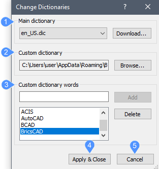 Gibt ein benutzerdefiniertes Wörterbuch an, das für die Rechtschreibprüfung verwendet werden soll. Verwenden Sie benutzerdefinierte Wörterbücher für fachspezifische Wörter, wie z. B. medizinische oder mechanische Begriffe.