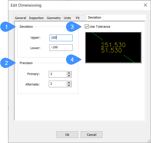 - Lineare Skalierung: Gibt die lineare Skalierung des Bemaßungswerts an. Standardmäßig ist dies auf 1 eingestellt.