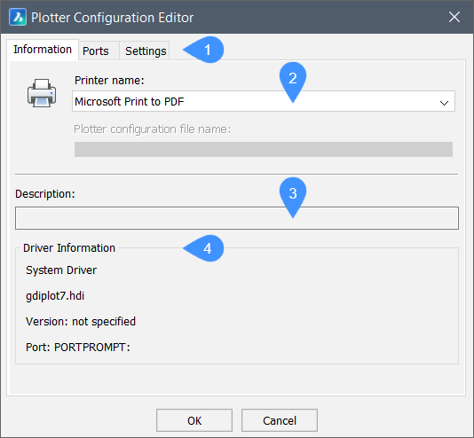 Im Dialog Plotterkonfiguration-Editor können Sie benutzerdefinierte PC3-Parameterdateien für Drucker und andere Ausgabegeräte erstellen und bearbeiten.