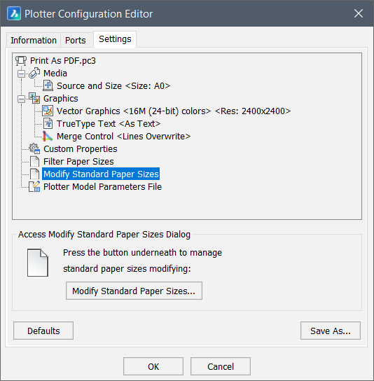 Anmerkung: Für einige Plotterkonfigurationsdateien (PC3) können Sie Standardpapierformate ändern: