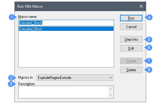 Über den Dialog VBA Makro ausführen werden VBA-Makros ausgeführt, erstellt, bearbeitet und gelöscht.