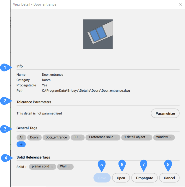 - Zeigt die Parameter des Details oder die Option zum Parametrisieren des Details an.