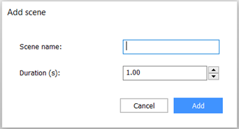 Öffnet den Dialog Szene hinzufügen, um den Namen der Szene und ihre Dauer (s) anzugeben:
