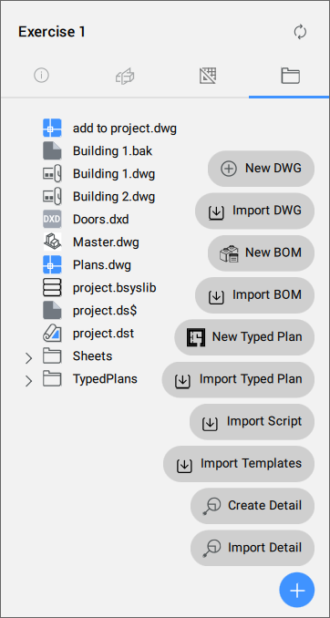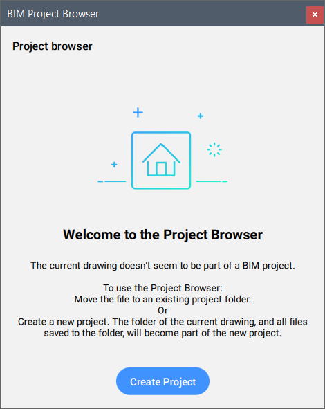 Wenn Sie die neue Zeichnung in einem vorhandenen Projektordner speichern, zeigt der BIM Projekt-Browser die Schaltfläche Zum Projekt hinzufügen an. Klicken Sie darauf, um die Zeichnung und alle erforderlichen Dateien zum Projektordner hinzuzufügen.