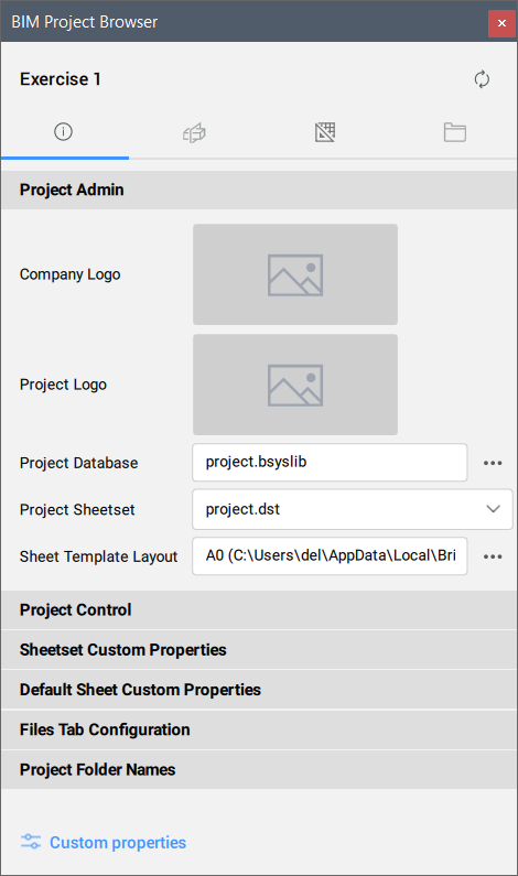 - Firmenlogo: klicken Sie auf die Miniaturansicht, um eine PNG-Datei auszuwählen. Es wird eine Kopie im Projektordner erstellt und in "project.png" umbenannt. Dies kann zum Beispiel in einem Titelblock verwendet werden.