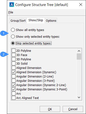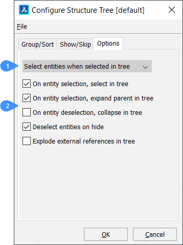 Anmerkung: Eigenschaften und Wertdefinitionen, die mit dem Befehl BIMEIGENSCHAFTEN definiert wurden, können ausgewählt werden, um den Strukturbaum zu konfigurieren. -
