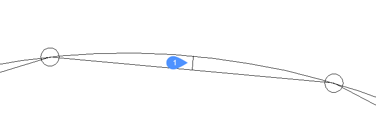 Steuert den mittleren Ordinatenabstand (1) des Profilkörpers, den maximalen Abstand zwischen dem Bogen und dem Sehnensegment (gerade), der für die Bogenannäherung verwendet wird.