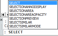 Wszystkie polecenia i / lub zmienne systemowe i / lub preferencje użytkownika, które zawierają bieżący ciąg znaków, są wyświetlane na liście sugestii.